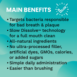 Thanks to our proprietary Slow Dissolve® Technology, each strip gradually melts in your dog’s saliva—coating teeth and gums for full-mouth coverage and extended contact time. More area. More time. Better results.