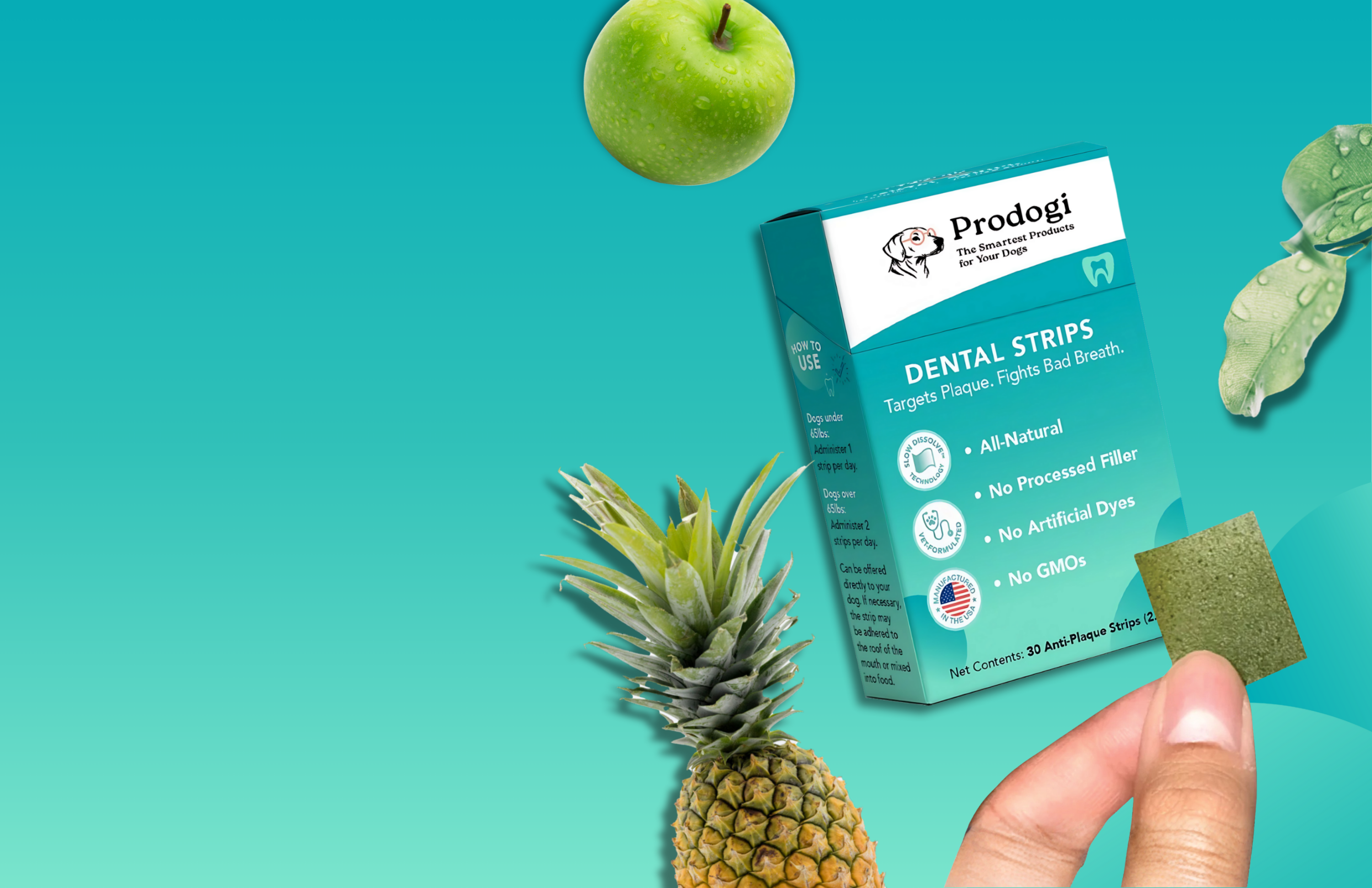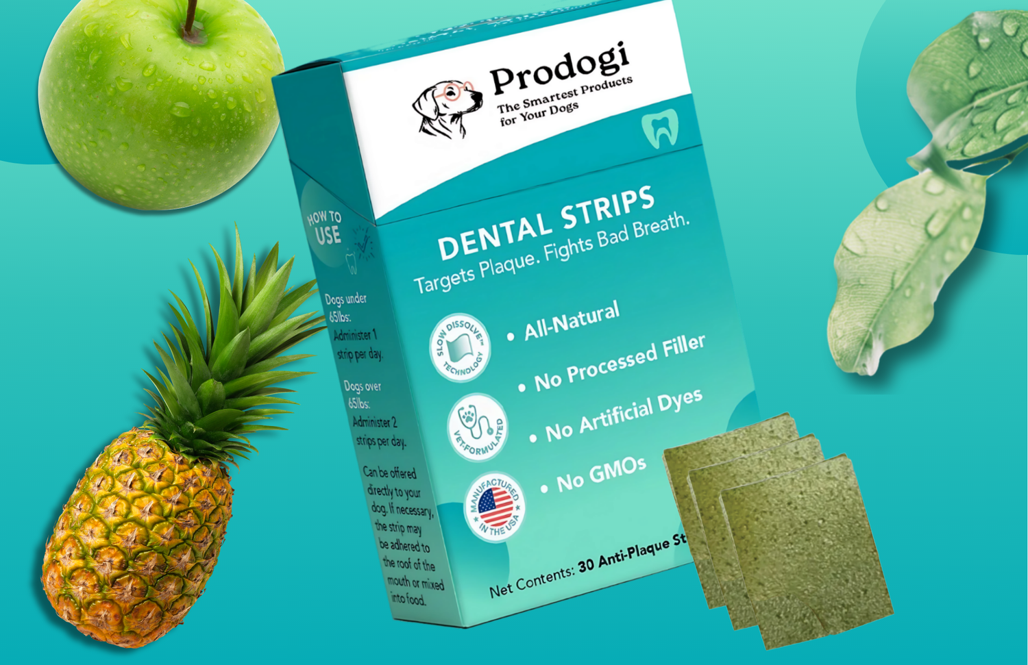 In my practice, most dogs came in with dental disease despite the hundreds of dental chews and powders on the market. I knew there had to be a better way, which is why we developed Prodogi Strips.